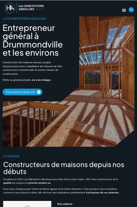 Habitations Absolues conçoit et réalise des projets résidentiels et commerciaux haut de gamme, alliant design, qualité de construction et souci du détail. L’entreprise souhaitait un site web à la hauteur de ses réalisations, capable de soutenir activement sa croissance.