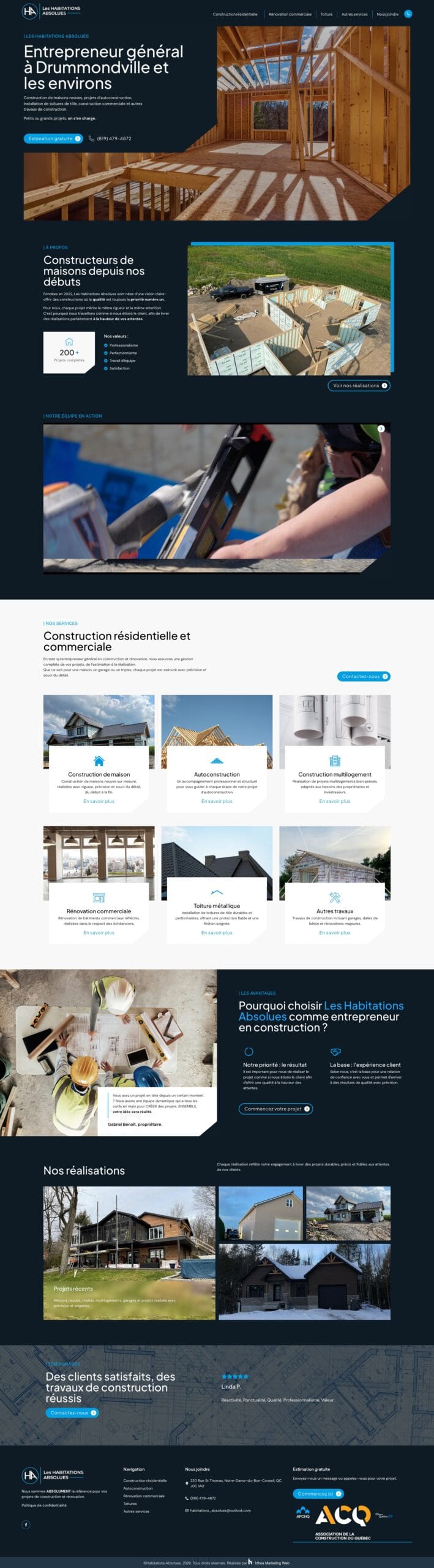 Un site web à la hauteur des réalisations d’Habitations Absolues, conçu pour inspirer confiance et générer des leads qualifiés. Une plateforme performante qui permet désormais de lancer des campagnes Google Ads qui convertissent réellement et soutiennent la croissance de l’entreprise.